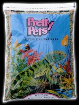 Iguanas- These formulas are nutritionally balanced and contain the proper 2 to 1 calcium to phosphorous ratio needed for optimal growth and good health. Pretty Pets can be introduced by mixing with chopped fruit or vegetables or moistened with water or fruit juice. Juvenile Iguana food has 18% protein, 5% fat and 6% fiber. Adult Iguana food has 12% protein, 3% fat and 9% fiber. Extra calcium supplements are not necessary when Pretty Pets is 80% of your iguana's food intake.