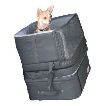 492873 Stow and Go Pet Car Seat We love compact convenience. The SNOOZER Stow and Go is a car seat and a cozy, foldout bed, but it also converts to a suitcase! It keeps Doggy's essentials neat, organized and close at hand while you're on the move. Features: A safer way to travel: keeps your dog secured in case of accident and off your lap while driving 3-in-1 design saves space and makes traveling with your pet easier Secures to back seat with seat belt Elevated car seat lets your pooch enjoy the view outside May help reduce motion sickness in some dogs Safety tether attaches to harness to keep dog safely in place Mesh front panel High walls provide a den-like feeling of security Supportive and comfortable foam padding Nylon straps, carry handles and snap buckle closures Durable fabrics and heavy-duty zippers Item Specifications: Size: Car Seat (15"L x 18"W x 18"H); Suitcase (15"H x 18"W x 6"D); Bed (2"H x 18"W x 29"D, 9.5"H back wall) Color: Black