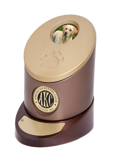 The American Kennel Club urn is a lovely remembrance for your faithful friend. The urn features the look of burnished copper, bronze, and polished wood. The AKC logo is beautifully embossed on the face of the urn. This is truly the finest canine urn available and a place of honor for a best friend.